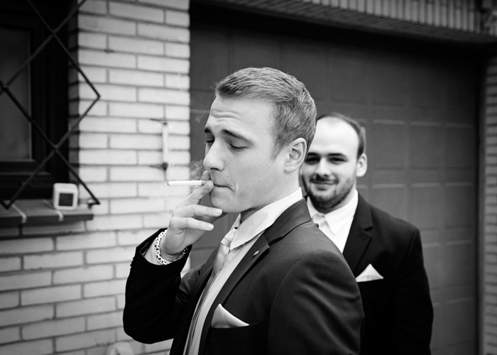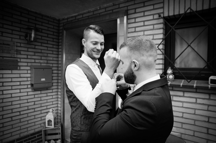 John, der für uns schon einige Jahre gemodelt hatte, versammelte seine Jungs beim “Getting Ready” um sich, und sie halfen ihm, seine Nervosität zu überwinden.